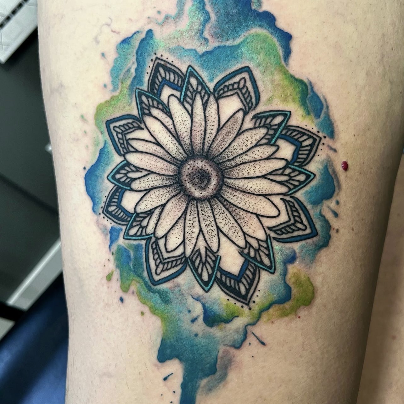 CaraBear has been tattooing in Northern Michigan for 8 years, from Gaylord to Traverse City to Petoskey. She says life is too short to not have fun with it! Excelling in color work, she specializes in pieces with bold hues, Patchwork sleeves, Watercolor, and Glitter style. She is also well versed in Black & Grey, Traditional, and Semi-Realism. Some of the subjects she enjoys most include cartoons, pop culture, flowers, and silly things. In the future she hopes to delve more into Realism and portraits.